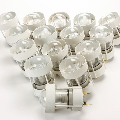 Retro loftlamper fra 1960’erne udført i hvidlakeret metal.