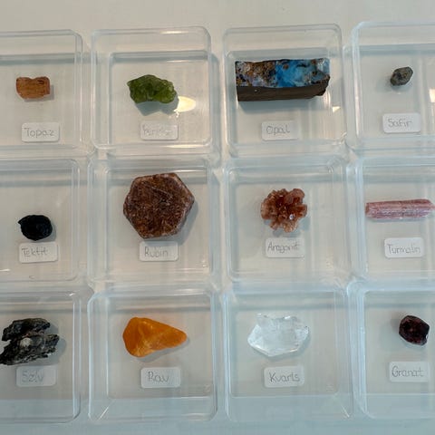 Samling af krystaller og mineraler