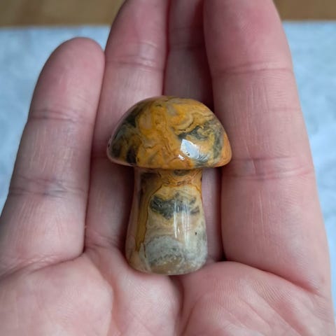 Her er 9 forskellige små svampe udskåret af "Crazy lace" agat sten, måler ca. 3,7cm og 20g.