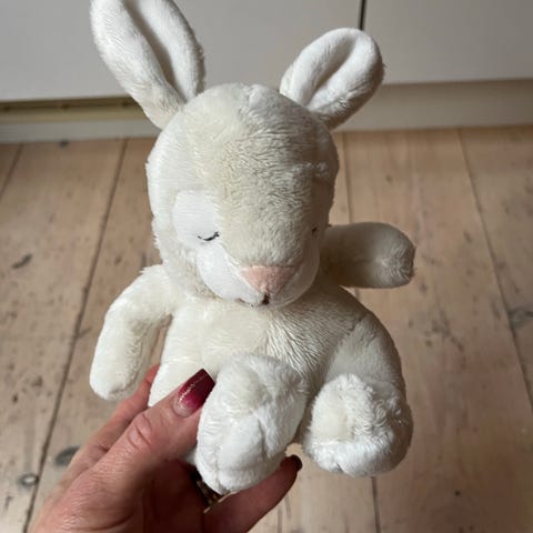 Håndlavet legetøj. Denne kanin er fra La Maison de Lola, og er en del af en samling af bløde "væsner" lavet af et ungt portugisisk par, den er håndsyet af uld og filt og fyldt med andefjer. Den er virkelig sød