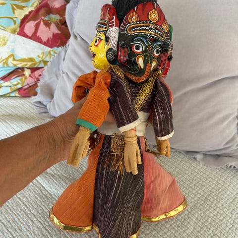 Spansk Dukke i sort/Grønblå fra 1960-70