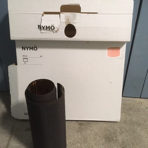 Lampeskærm, Nymö / Ikea, hvid udvendig, guld indvendig. Ø 44 cm, H 33 cm.