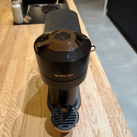Nespresso Vertuo Next Premium i brun farve med guld metal. Brugt meget få gange, og sælges da jeg desværre ikke rigtig får drukket meget kaffe.