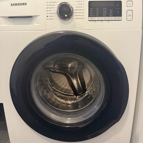 Brugt samsung vaskemaskine i hvid farve. Velegnet til almindelig husholdningsvask. Bemærk, at der er mindre kosmetiske skader på maskinen, som ikke påvirker funktionaliteten.