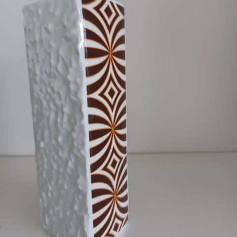 Bavaria Greidlitz vase i hvidt porcelæn med detaljeret fuglemotiv og blomsterdekoration. Vasen er håndmalet og har en slank, elegant form. Mærket under bunden viser serienummer 79.