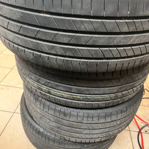 Dækkene har siddet på en Kia ev6, og kørt 15.000 km. Som det ses er de stort set som nye. Produceret i uge 48, 2024. Uden fælg. Afmonteret 20/10 2025, og opbevares pt korrekt.