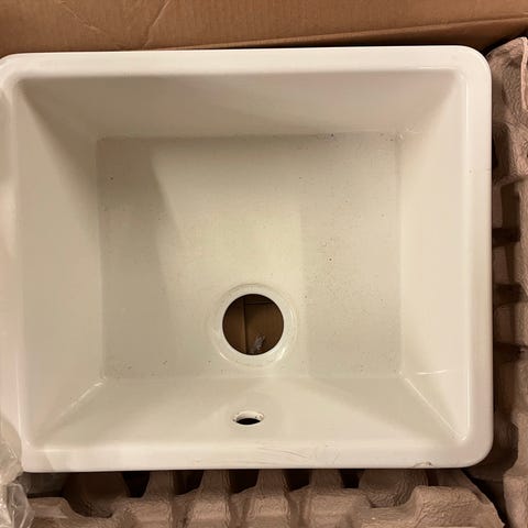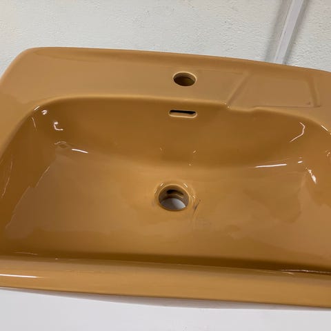Vask i brun keramik med enkelt armaturhul. Vasken er firkantet med integreret bakke og har et klassisk design. Materialet er holdbar keramik, og farven er en dyb brun.