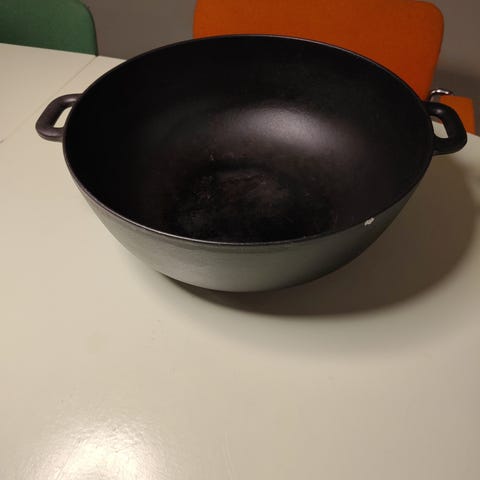 22 cm i diameter. 42 cm incl håndtag