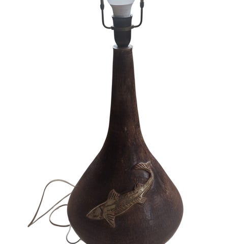 Denne smukke bordlampe er et dejligt eksempel på skandinavisk design fra midten af århundredet i jordfarver med hvid plisseret skærm og signeret på foden. Den bruger én stor E27-skruepære på op til 60W.
