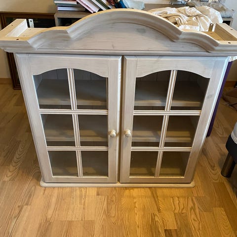 Vægskab af træ, hvid med glasdør. Nyt.