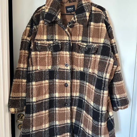 ONLY Grey jakke i brun farve, størrelse 42 til kvinder. Jakken er af typen Andre jakker og har et ternet mønster. Materialet fremgår ikke specifikt, men jakken har knapper og brystlommer.