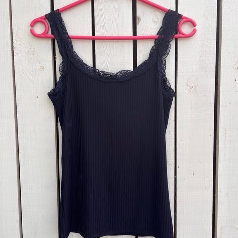 ONLY Edge Collection top i lyserød farve, størrelse M. Toppen har tynde stropper og volangdetaljer foran. Materialet er blødt og let, velegnet til hverdagsbrug.