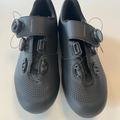 Shimano RC3 cykelsko i størrelse 39, sort farve. Købt i forkert størrelse. Skoene er helt nye, kun lige prøvet på en enkelt gang indendørs.