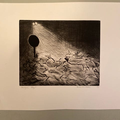 Offset af Lone Merete Belhage (1961) "Gående Fugl" b: 20,5 h: 25,5 cm