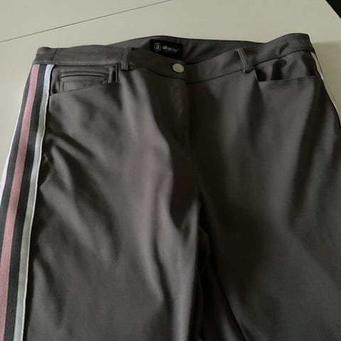 Varme og bløde golfbukser i mærket RÖHNISCH. 2 forlommer, 2 baglommer og lomme til golfbold. Bordaux - str. 44 (lille i størrelsen ?). Kun brugt få gange .