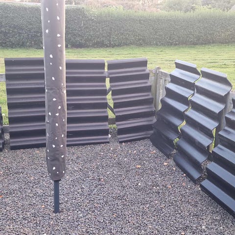 Str 1100*610 mm, total 66 plader, produceret i 1998 (og altså uden asbest). Brugte skruer kan medfølge