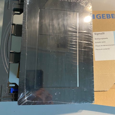 Geberit Sigma 01 trykplade til indbygget toiletcisterne. Fremstillet i sort plast med to trykknapper i forskellige størrelser for vandbesparelse. Passer til standard Geberit indbygningscisterner. Designet til væghængte toiletter.