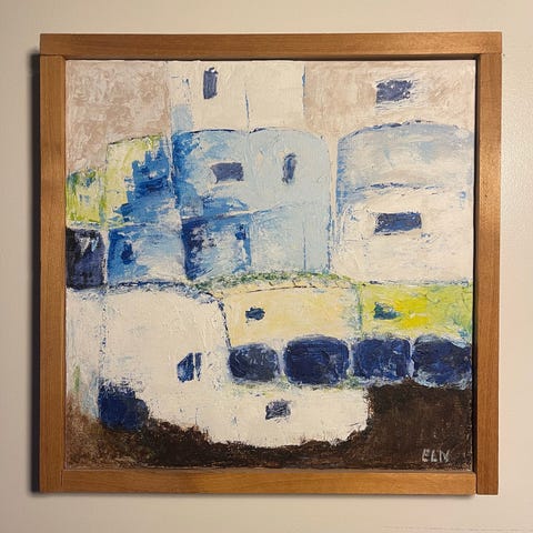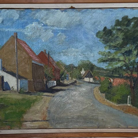 (349) Motiv af huse af: Edith Andersen (død 2001) i flot ramme