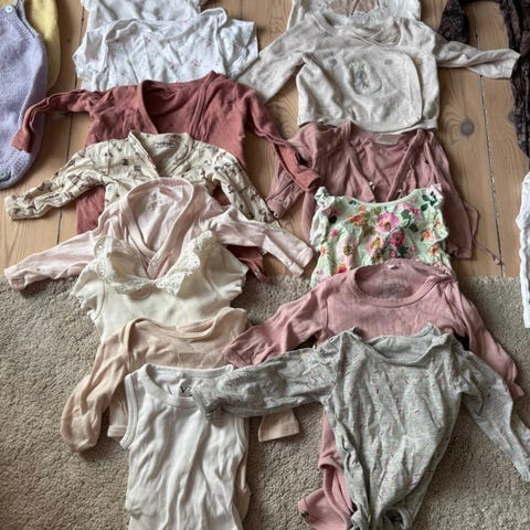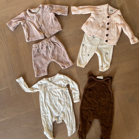 Diverse new born tøj pakke - pige (0-2 mdr). Pakken inkluderer alt på billederne; dragte, sutsko og sko, bodystocking, bukser, cardigan. Nattøj, huer etc. i mærkerne Petit Bateau, Serendidity, Zara, JellyCat, Tartine et Chocolat, H&M