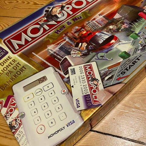 Monopoly Boels Cramo brætspil med spilleplade, spillepenge, kort og spillebrikker. Spillet indeholder temaer relateret til Boels og Cramo, og er designet til 2-6 spillere. Brættet og komponenterne er i standardstørrelse og materiale, egnet til familie- og vennebrug.