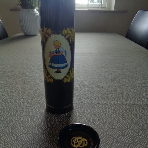 Irma kiksedåse. Rund høj kiksedåse med fine motiver hele vejen rundt. Se billederne.