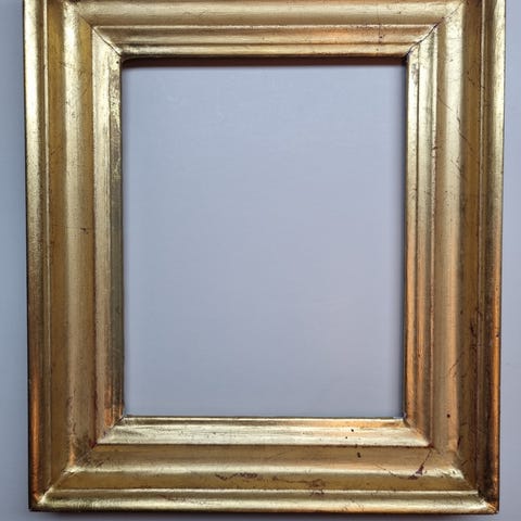 Slank håndforgyldt ramme. Profileret træ med bolus og bladguld. 62x48 cm