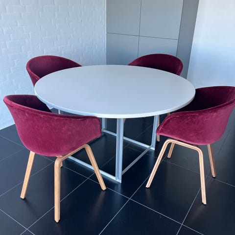Herudover medfølger tillægsring i ahorn PK54A, hvilket påsat forøger bordet til en diameter på 210 cm - disse er kun brugt få gange.