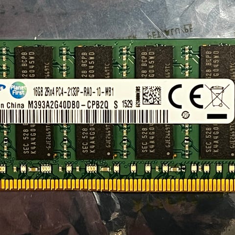 Samsung server-RAM, model M393A1K43CB2-CTD, 8 GB DDR4 2666 MHz ECC Registered (RDIMM).