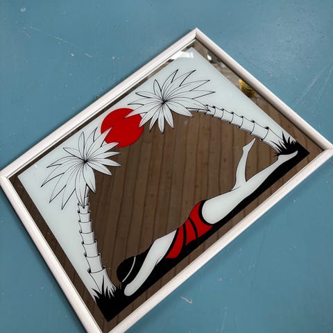 Sjovt spejl med klovnemotiv 🤡 Fedt motiv og fine detaljer. Lidt brugsspor hist og her. Måler 28x25 cm. Koster 50,- #spejlmedmotiv #klovnemotiv #retrospejl #retroindretning #genbrugsguld
