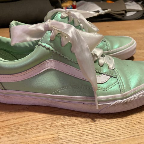 Klassiske vans, rød og hvid/lyserød. De er letters fiorvaskede, men ellers i god stand.