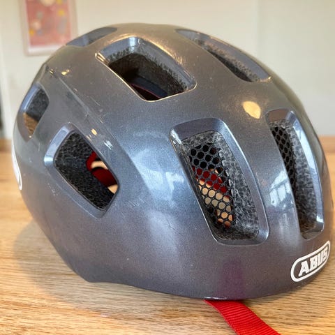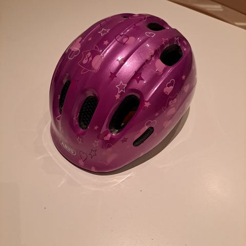 ABUS børnecykelhjelm i pink med motiv af enhjørning og slot. Hjelmen har flere ventilationshuller for god luftcirkulation og justerbar strop til sikker pasform. Designet til børn og egnet til cykling og andre udendørsaktiviteter, hvor hovedbeskyttelse er nødvendig.