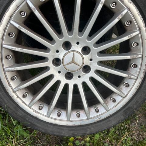 Ok fælge med få mærker der har sat på en 2007 Mercedes Ml55, dæk kan køre sæson ud men anbefales og skifte pga alder.