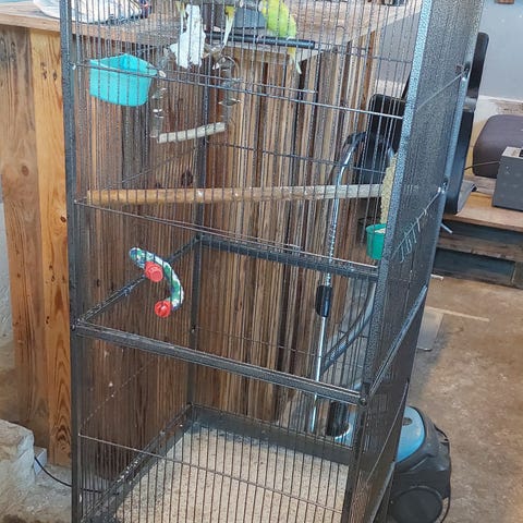 Sælger dette næsten helt nye fuglebur plus siddepinde, legetøj og mad til undulater.