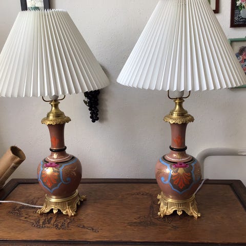 Porcelæns-hængelampe, porcelæn samt messing formentlig, smukke farver på porcelænet, sendes gerne på købers regning, fast pris.
