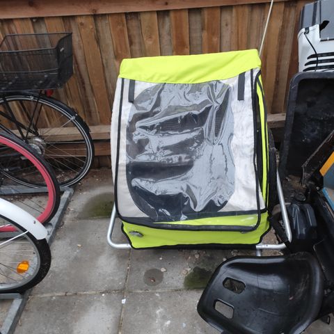 Vi sælger vores cykeltrailer, fordi vi har købt en ladcykel.