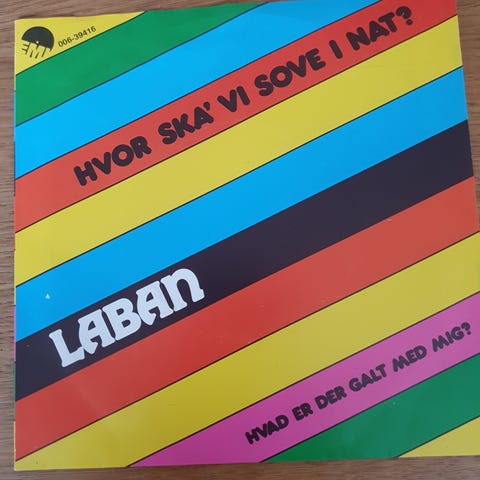Laban musikplade med coverbillede af to personer foran farvede striber. Produktet er en vinylplade med musikindhold. Farver på coveret inkluderer blå, gul, rød og grøn. Produktet er til musiklytning og samling.