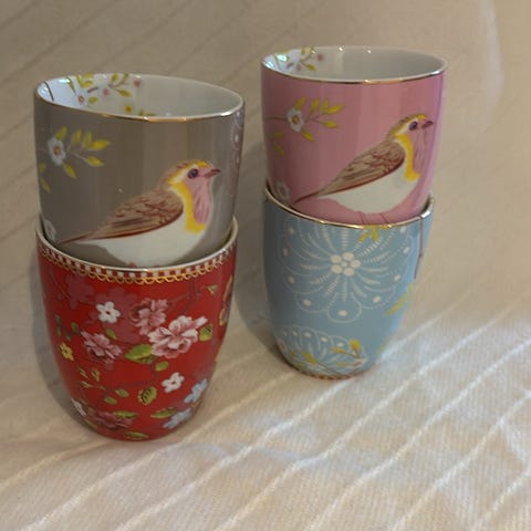 3 fine små skåle med blomstermønster.