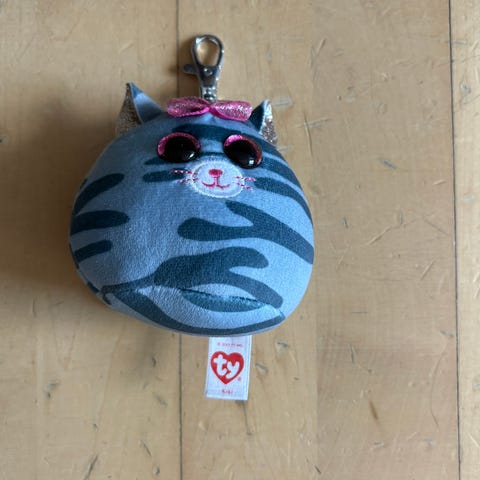 Nici Nøglering i form af et plysdyr, der forestiller en gris iført blå tøj. Nøgleringen har en metalring og en rød- og hvidstribet snor. Plysdyrnøgleringen er blød og velegnet til at hænge på nøgler eller tasker. Den er cirka 10 cm i højden.