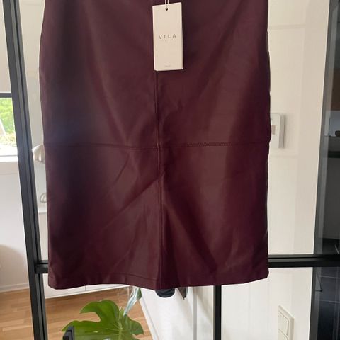 Læderlook, str. 42, Vila, Sort, PU polyester, Næsten som ny, Lynlås og slids bagpå. Livvidde 2x45 længde 55. Lækker blød læder look.