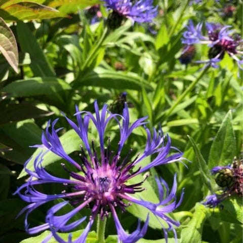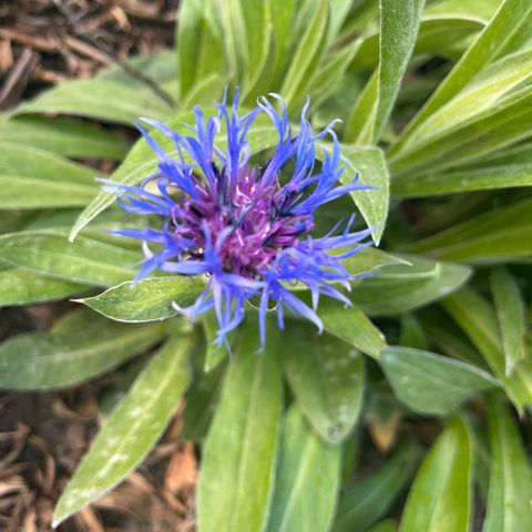 Blå knopurt giver flotte blå blomster i maj/juni måned og kan give en lille anden blomstring sidst på sommeren, hvis man klipper dem ned efter de er færdige første gang