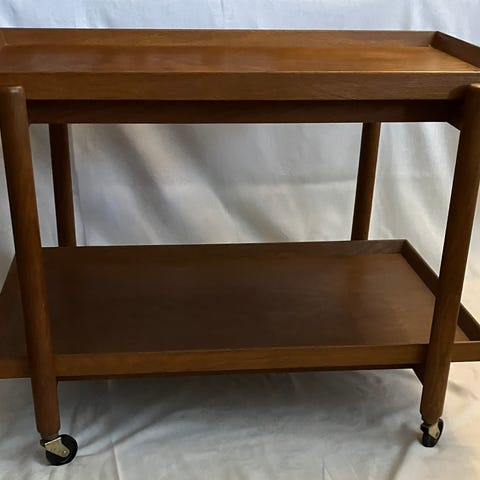 Dette er et autentisk vintage bakkebord, ideelt til stue, spisestue eller som serveringsbord. En eftertragtet model for samlere og elskere af dansk design fra 1950’erne og 1960’erne. Brug det som rullebord, barbord, cocktailbord, sidebord, strikkebord, sybord, til ynglingsbogen og en god kop kaffe. eller som natbord, god til arrangere brunch i soveværelset som søndagen. hotelstemning.