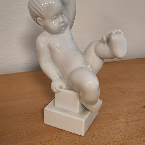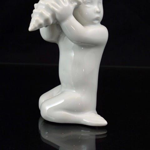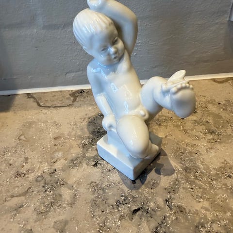 Bing og Grøndahl liggende havdreng 2155 i hvid porcelæn. Figuren forestiller en person i en sammenkrøllet siddende stilling. Porcelænsfiguren er glaseret og har en glat overflade.