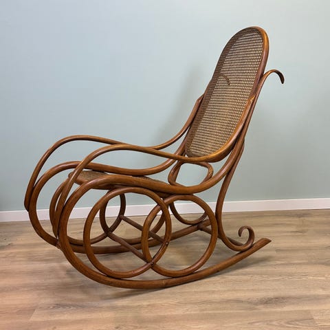 Smuk og Thonet-inspireret gyngestol med det karakteristiske svungne formsprog, der kendetegner klassisk bøjet træ-design. Stolen kombinerer lethed, komfort og æstetik i ét – et ikonisk møbel, der tilfører rummet varme og personlighed.