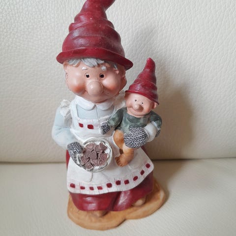 En finurlig nissemor med 2 nissebørn i fint tøj og fine træsko