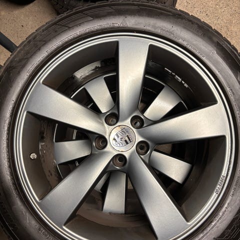 Fælgene er brugt og der er både kantstens ridser og steder omkring center, hvor lakken er faldet af.