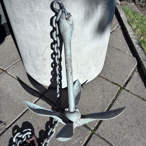 Galvaniseret, kalibreret 6mm ankerkæde, 30 meter. Ny pris ca 1.500 kr.