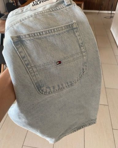 Tommy Hilfiger Tommy Jeans drenge denim shorts i blå farve, størrelse 170. Shortsene er lavet af denim materiale og har lommer foran og bagpå. Velegnede til afslappet brug.