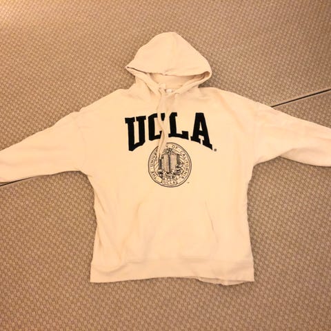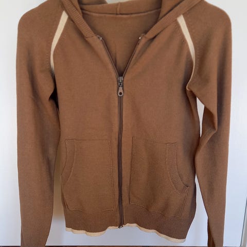 Hættetrøje med korte ærmer. Brun. str. 38? Ukendt mrk.