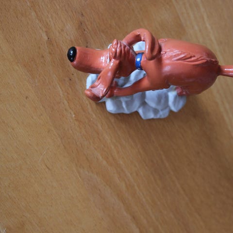 Den Røde Pude (Tissebleer): Med den sjove, blå/grå figur med gul 'ble', der er motivet fra "Tissebleer" vingummiposen.
