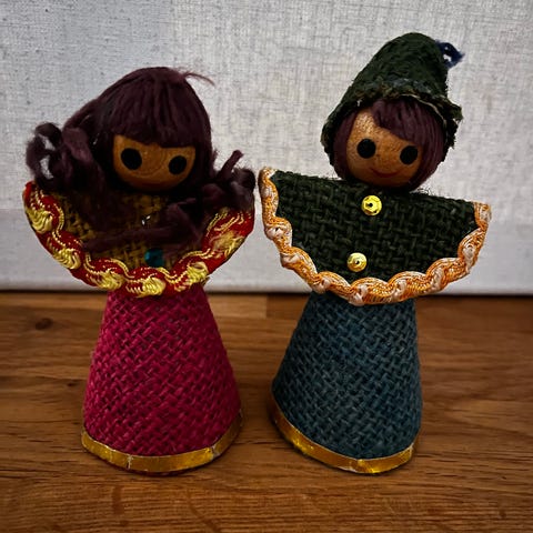 Rigtig gammel hessianengle, tror hun er lavet af pap og hessian